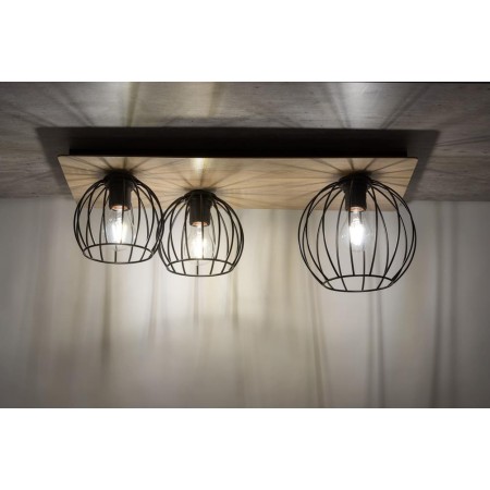 Loftowa lampa z elementami drewna Sigma CYBER SIG32359 prostokąt czarny / brązowy kolor plafon