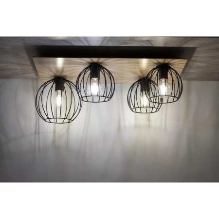 Loftowa lampa z elementami drewna Sigma CYBER SIG32360 prostokąt czarny / brązowy kolor plafon