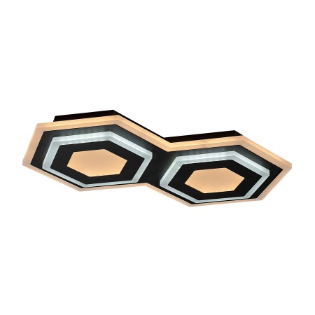 Energetyczna, radosna, podwójna lampa sufitowa Bitsi została zaprojektowana przez Rábalux. Wykonana z metalu, lampa składająca się z dwóch sześciokątnych elementów, polecana jest osobom poszukującym nowoczesnego, ekscytującego designu do salonu lub sypialni. Lampa sufitowa Bitsi, w kolorze czarnym i piaskowo-żółtym, uzupełniona jest białym kloszem z tworzywa sztucznego i wyposażona jest we wbudowane źródło światła LED o mocy 44 W. Strumień świetlny lampy wynosi 1600 lumenów, strumień świetlny źródła światła 4600 lumenów, a temperatura barwowa 3000+6000 K. Połączenie chłodnej bieli i ciepłej bieli może być dobrym rozwiązaniem do różnych pomieszczeń w domu, w tym przypadku do salonu, gdzie wieczorem spędzamy więcej czasu. Wyjątkowo smukła lampa sufitowa Bitsi ma wymiary 430 x 270 mm, a jej odległość od sufitu wynosi zaledwie 45 mm.