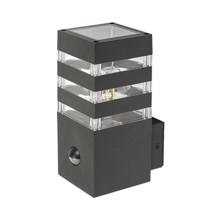 Nowoczesna lampa ścienna zewnętrzna Ankara z czujnikiem ruchu to idealny wybór zarówno na taras, jak i na zewnętrzną ścianę domu, na przykład do oświetlenia ścieżki prowadzącej do wejścia. Antracytowa lampa aluminiowa uzupełniona jest paskami z przezroczystego tworzywa sztucznego, które zapewniają ekscytujący efekt świetlny. Lampę można zamontować na ścianie za pomocą elementu wystającego u dołu. Lampę Ankara można stosować z żarówkami E27 o maksymalnej mocy 12 W. Inteligentny czujnik ruchu, który dostosowuje jasność lampy do warunków zewnętrznych, wykrywa ruch z odległości 6-8 metrów, w zakresie 105°. Wymiary lampy zewnętrznej to: szerokość 90 mm, wysokość 200 mm, a odległość od ściany 135 mm. Lampa posiada stopień ochrony IP44, co zapewnia ochronę przed wnikaniem obiektów o średnicy do 1 mm oraz przed wodą z dowolnego kierunku. Zewnętrzna lampa ścienna Ankara z czujnikiem ruchu sprzedawana jest bez źródła światła.