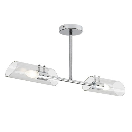 Dzięki swojemu unikalnemu designowi, lampa sufitowa Teodoro może stać się stylowym dodatkiem do nowoczesnej łazienki. Wykonana z metalu i wykończona w chromie, lampa składa się z elementu w kształcie litery T połączonego z małą, okrągłą dekoracyjną podstawą i żarówkami. Cylindryczne klosze wykonane są z przezroczystego szkła, dzięki czemu źródło światła jest w pełni widoczne; warto zastosować dekoracyjną żarówkę o niestandardowym kształcie. Oprawa Teodoro może być wyposażona w dwa źródła światła z gwintem E14, każde o maksymalnej mocy 12 W. Aby uzyskać czysty, nowoczesny efekt w łazience, zaleca się zastosowanie źródła światła o naturalnej barwie. Oprawa Teodoro posiada stopień ochrony IP44, który chroni ją przed wnikaniem przedmiotów o średnicy powyżej 1 mm oraz przed wodą z dowolnego kierunku. Szerokość oprawy wynosi 730 mm, odległość od sufitu wynosi 320 mm, średnica klosza wynosi 270 mm, średnica klosza wynosi 80 mm, a długość 270 mm. Produkt dostarczany jest bez źródła światła.