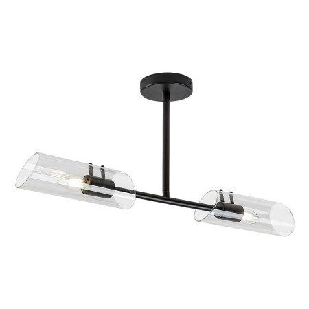 Dzięki swojemu unikalnemu designowi, lampa sufitowa Teodoro może stać się stylowym dodatkiem do nowoczesnej łazienki. Wykonana z metalu, czarna lampa składa się z elementu w kształcie litery T połączonego z niewielką, okrągłą dekoracyjną podstawą i głowicami. Cylindryczne klosze wykonane są z przezroczystego szkła, dzięki czemu źródło światła jest w pełni widoczne; warto zastosować dekoracyjną żarówkę o niestandardowym kształcie. Oprawę Teodoro można wyposażyć w dwa źródła światła z gwintem E14, każde o maksymalnej mocy 12 W. Aby uzyskać czysty, nowoczesny efekt w łazience, zaleca się zastosowanie źródła światła o naturalnej barwie. Oprawa Teodoro posiada stopień ochrony IP44, co gwarantuje jej ochronę przed wnikaniem obiektów o średnicy powyżej 1 mm oraz przed wodą z dowolnego kierunku. Szerokość oprawy wynosi 730 mm, odległość od sufitu 320 mm, średnica otworu montażowego 270 mm, średnica każdego klosza 80 mm, a długość 270 mm. Produkt dostarczany jest bez źródła światła.