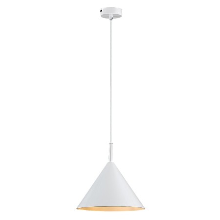Prosty design lampy wiszącej Jarod, utrzymanej w industrialnym stylu, czyni ją idealnym wyborem do wielu nowoczesnych salonów i jadalni. Wykonana w całości z metalu, biała oprawa uzupełniona jest stożkowym kloszem w kształcie litery A i może być zamontowana na suficie za pomocą małej, okrągłej podstawy. Lampa Jarod jest przeznaczona do źródła światła z gwintem E27 o maksymalnej mocy 40 W. W zależności od preferencji, można wybrać ciepłą biel lub naturalną biel. Ciepłe białe światło pomaga stworzyć przytulną, domową atmosferę, a naturalne białe światło zapewnia czysty, nowoczesny efekt, który może być korzystny w salonie, jednym z najczęściej użytkowanych pomieszczeń w domu. Wymiary lampy wiszącej Jarod to: średnica 250 mm, wysokość 175 mm, długość zawieszenia 1300 mm i średnica otworu montażowego 80 mm. Produkt jest dostarczany bez źródła światła.