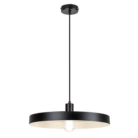 Lampa wisząca Alatar, utrzymana w industrialnym stylu, może stać się wyrazistym elementem wystroju nowoczesnego salonu lub jadalni. Wykonana w całości z metalu i wykończona w matowej czerni, lampa posiada okrągły, półkolisty klosz, matowo czarny na zewnątrz i biały wewnątrz. Niewielka, okrągła podstawa umożliwia montaż sufitowy. Lampa Alatar jest przeznaczona do źródła światła z gwintem E27 o maksymalnej mocy 40 W. Zalecamy użycie naturalnie białego źródła światła, które tworzy jasny, nowoczesny efekt, idealny do salonu lub jadalni. Ponieważ źródło światła jest w pełni widoczne w tej lampie, zaleca się użycie niestandardowej żarówki dekoracyjnej. Lampa wisząca Alatar ma średnicę 400 mm, długość zawieszenia 1500 mm i średnicę otworu montażowego 90 mm. Lampa jest dostarczana bez źródła światła.