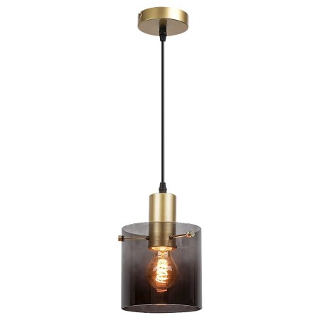 Reprezentując nowoczesny styl, pojedyncza lampa wisząca Donati będzie wyjątkowym dodatkiem do Twojego salonu, sypialni lub gabinetu. Duża metalowa lampa wisząca ma okrągłą, dekoracyjną podstawę w kolorze złotym i klosz z przyciemnianego szkła. Cylindryczny, ciemny klosz tworzy tajemniczy efekt świetlny. Lampa wisząca jest przeznaczona do pojedynczej żarówki o mocy do 40 W. Gwint to E27. Aby stworzyć przytulną, intymną atmosferę, wybierz źródło światła emitujące ciepłe, białe światło. Wymiary pojedynczej lampy wiszącej Donati są następujące: średnica klosza 150 mm, odległość od sufitu 1500 mm, średnica montażowa 100 mm. Model ten jest dostarczany bez źródła światła.