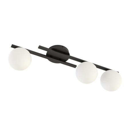 Nowoczesna lampa sufitowa z kulistymi kloszami i elegancką czarną ramą. Minimalistyczny design idealnie komponuje się z wnętrzami w stylu loft i modernistycznym. Idealna do salonu, sypialni lub przedpokoju, zapewniając subtelne i stylowe oświetlenie.