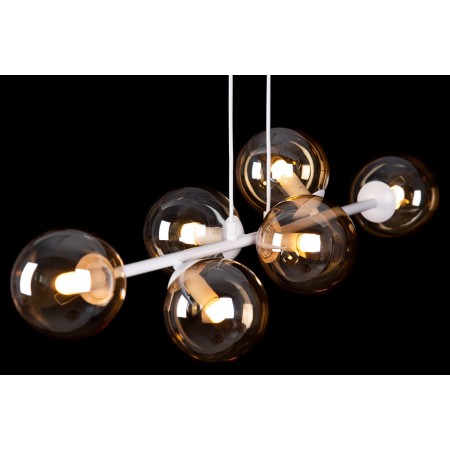 Lampa Emibig ROSSI 8 EM879/6 to elegancka metalowa biała lampa z 8 szklanymi kloszami w formie kul, oferująca regulowana wysokość i nowoczesny akcent oświetleniowy do wnętrz.