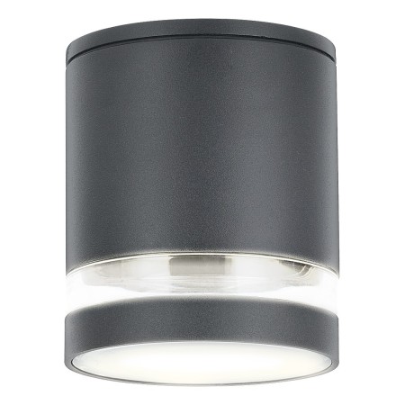 Nowoczesna, cylindryczna lampa sufitowa Zombor wykonana jest z antracytowego aluminium. Cechą charakterystyczną tego projektu jest ciemna obudowa przełamana cienkim paskiem przezroczystego, plastikowego klosza. Lampa skierowana w dół to idealny wybór do oświetlenia tarasu. Lampa Zombor może być używana z pojedynczą żarówką o mocy do 35 W. Gwint to GU10. Aby stworzyć przytulną, intymną atmosferę, zalecamy montaż żarówki emitującej ciepłe, białe światło. Średnica tej zewnętrznej lampy sufitowej wynosi 102 mm, a jej odległość od sufitu wynosi 120 mm. Dzięki stopniowi ochrony IP54 można ją bezpiecznie zamontować w miejscach mniej chronionych przed deszczem i kurzem. Lampa jest dostarczana bez źródła światła.