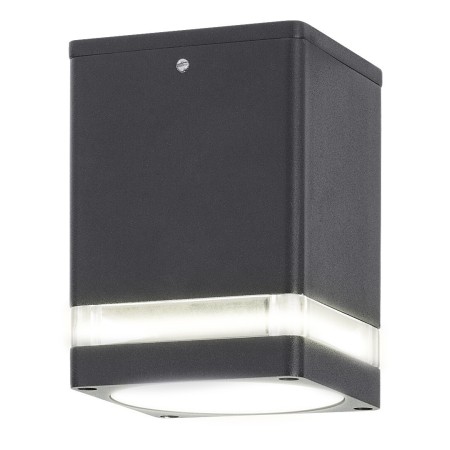 Nowoczesna, pryzmatyczna lampa sufitowa Zombor wykonana jest z antracytowoszarego aluminium. Cechą charakterystyczną tego projektu jest ciemna obudowa przełamana cienkim paskiem przezroczystego, plastikowego klosza. Lampa skierowana w dół to idealny wybór do oświetlenia tarasu. Lampa Zombor może być używana z pojedynczą żarówką o mocy do 35 W. Gniazdo to GU10. Aby stworzyć przytulną, intymną atmosferę, zalecamy montaż żarówki emitującej ciepłe, białe światło. Wymiary tej zewnętrznej lampy sufitowej to 90 x 90 mm, a jej odległość od sufitu wynosi 120 mm. Dzięki stopniowi ochrony IP54 można ją bezpiecznie zamontować w miejscach mniej chronionych przed deszczem i kurzem. Lampa jest dostarczana bez źródła światła.
