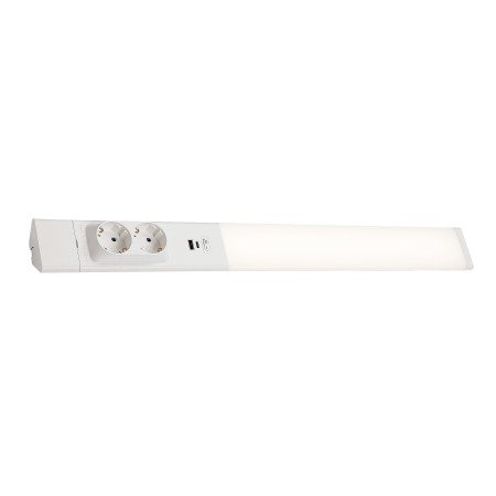 Wysoka jasność i prosty design tej nowoczesnej lampy podszafkowej sprawiają, że jest ona praktycznym wyborem do niemal każdej nowoczesnej kuchni. Wyposażona w przełącznik lampa jest bardzo przydatna podczas przygotowywania posiłków lub zmywania naczyń. Lampa Bilal wykonana jest z matowego, białego aluminium i ma matowobiały klosz. Oprawa oświetleniowa posiada wbudowane źródło światła LED o mocy 18 W, klasie energetycznej F, o strumieniu świetlnym 1750 lumenów z kloszem i 2350 lumenów bez klosza. Żywotność źródła światła wynosi 25 000 godzin. Źródło światła o temperaturze barwowej 4000 K emituje naturalne, białe światło, zapewniając nowoczesny, czysty efekt i idealne oświetlenie do pracy w kuchni. Lampa Bilal posiada wbudowaną ładowarkę USB, co jest szczególnie przydatne, gdy potrzebujesz naładować telefon komórkowy podczas gotowania. Wymiary oprawy oświetleniowej podszafkowej do kuchni są następujące: szerokość 600 mm, wysokość 60 mm, odległość od ściany 45 mm.