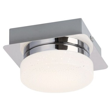 Mała, okrągła lampa sufitowa Hilary z efektem gwiazdy będzie niezwykle przytulnym dodatkiem do nowoczesnego salonu lub sypialni. Ze względu na swoje rozmiary, model ten prezentuje się szczególnie efektownie, gdy jest zainstalowany obok siebie. Chromowana i opalowa lampa wykonana jest z metalu i tworzywa sztucznego i posiada wbudowane, energooszczędne źródło światła LED. Źródło światła ma moc 5 W, jasność 400 lumenów i żywotność 20 000 godzin. Temperatura barwowa wynosi 4000 K, dzięki czemu emituje naturalne, białe światło. Wymiary kwadratowej, dekoracyjnej podstawy lampy to 130 x 130 mm. Lampa sufitowa Hilary objęta jest 5-letnią gwarancją.