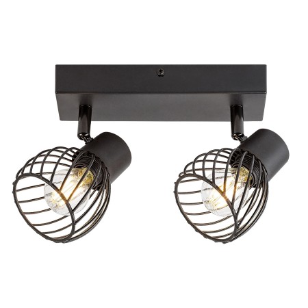 Podwójny reflektor Aberama w stylu industrialnym polecany jest przede wszystkim do salonów i sypialni. Czarny model, wykonany z tworzywa sztucznego i metalu, charakteryzuje się kulistymi kloszami z otwartą dolną częścią i może być montowany do sufitu za pomocą prostokątnej, dekoracyjnej podstawy. Dzięki jednorzędowym, ruchomym głowicom, światło można skierować w dowolnym kierunku. Oprawa Aberama pomieści dwa źródła światła z gwintem E14, każde o maksymalnej mocy 10 W. Jeśli lampa sufitowa ma być zamontowana w sypialni, zaleca się zastosowanie źródeł światła o ciepłej, białej barwie, które pomogą stworzyć przytulną, domową atmosferę. Wymiary podwójnej oprawy Aberama to: szerokość 235 mm, wysokość 130 mm, średnica klosza 85 mm i odległość od oprawy do sufitu 155 mm. Produkt jest dostarczany bez źródła światła.