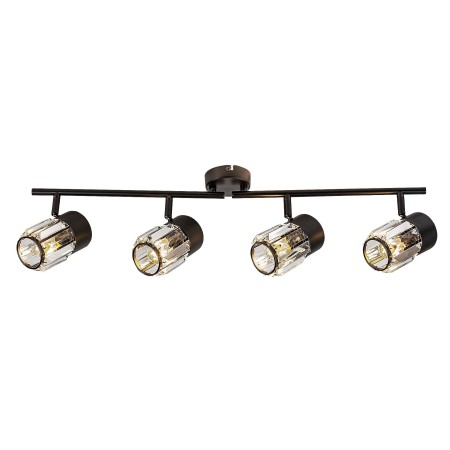 Lampa sufitowa Rabalux Venaro z czterema żarówkami to propozycja dla osób poszukujących klasycznej lampy pasującej do większych pomieszczeń w domu. Reflektor wykonany jest z czarnego metalu i można go zamontować na suficie za pomocą małej, okrągłej, dekoracyjnej podstawy. Głowice lamp ułożone są w rzędzie, obok siebie, na drążku wsporczym przymocowanym do ozdobnej podstawy. Szklane klosze mają cylindryczny kształt i kryształową powierzchnię. Głowice lamp można obracać dzięki przegubom kulowym, co pozwala na skierowanie światła zgodnie z potrzebami. Ten model to idealny wybór nie tylko do salonów i sypialni, ale także do kuchni i jadalni. Można w nim stosować cztery żarówki, każda o mocy do 15 W. Gwint E14. Lampa sufitowa jest dostarczana bez źródeł światła.