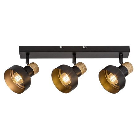 Trzypunktowa lampa sufitowa Rabalux Saskia polecana jest przede wszystkim miłośnikom stylu nordyckiego. Lampa wykonana jest z metalu i drewna w kolorze czarnym i dębowym. Elegancki, ciemny odcień korpusu i dekoracyjnej podstawy przełamują dębowe klosze, które dodają lampie naturalnego charakteru. Wnętrze kloszy jest w kolorze złotym, który dobrze komponuje się z naturalnym odcieniem drewna. Dekoracyjna podstawa charakteryzuje się wydłużonym, prostokątnym kształtem. Lampa wyposażona jest w trzy obrotowe głowice, które pozwalają na rozprowadzenie światła po pomieszczeniu zgodnie z potrzebami. Ta lampa sufitowa to idealny wybór do salonu, sypialni lub gabinetu. Można w niej stosować trzy żarówki, każda o mocy do 15 W. Gwint E14. Reflektor dostarczany jest bez źródeł światła.