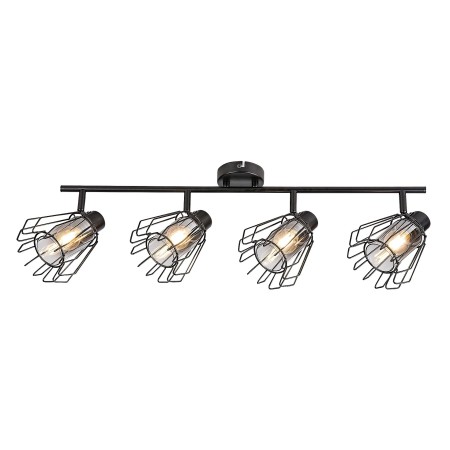 Lampa sufitowa Rabalux Emerencia z czterema żarówkami to propozycja dla osób ceniących lampy o niepowtarzalnym, industrialnym wyglądzie. Model ten charakteryzuje się metalowymi kloszami w kształcie prętów i jest wykonany z czarnego metalu. Głowice lampy posiadają wewnętrzne cylindryczne klosze z przydymionego szkła, otoczone zewnętrznymi kloszami w kształcie litery A. Lampę można zamontować na suficie za pomocą małej, okrągłej, dekoracyjnej podstawy, do której przymocowany jest cylindryczny pręt mocujący głowice. Ta lampa sufitowa idealnie sprawdzi się w większych salonach, kuchniach, jadalniach czy sypialniach. Jest przystosowana do czterech żarówek, każda o mocy do 40 W. Gwint: E14. Reflektor wyposażony jest w praktyczne, elastyczne głowice, które pozwalają na efektywne oświetlenie pomieszczenia. Lampa jest dostarczana bez źródeł światła.