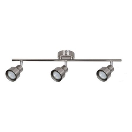 Nowoczesny reflektor Blake z 3 żarówkami idealnie sprawdzi się w różnych pomieszczeniach: salonie, sypialni, jadalni, a nawet kuchni. Wykonana w całości z metalu, lampa w kolorze satynowego chromu może być zamontowana na suficie za pomocą okrągłej, ozdobnej podstawy. Ruchome głowice lampy umieszczone są na poziomym uchwycie, który jest przymocowany do ozdobnej podstawy. Dzięki nim można łatwo i skutecznie oświetlić całe pomieszczenie. Blake wymaga trzech żarówek o mocy do 50 W każda. Gwint to GU10. W zależności od indywidualnych preferencji i potrzeb pomieszczenia, w którym montujesz lampę, możesz wybrać ciepłe lub naturalne białe źródło światła. Wymiary reflektora z 3 żarówkami to: szerokość 580 mm, wysokość 145 mm, odległość od sufitu 120 mm. Model sprzedawany jest bez żarówki.