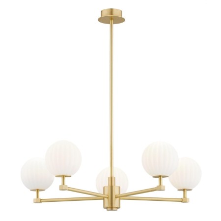 Lampa PALOMA 2184 to dzieło sztuki oświetleniowej, które wniesie do Twojego wnętrza blask i styl. Elegancki mosiężny stelaż w połączeniu z pięcioma ryflowanymi kloszami z mlecznego szkła, dodaje przestrzeni wyjątkowego charakteru. Projekt jest idealnym rozwiązaniem dla tych, którzy szukają lampy, która będzie jednocześnie praktyczna i dekoracyjna, doskonale wpisując się w różnorodne style wnętrzarskie.