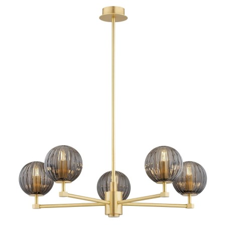 Żyrandol PALOMA 2186 to majstersztyk designu, który przemieni każde wnętrze w przestrzeń pełną luksusu i elegancji. Bogata, rozłożysta konstrukcja z litych mosiężnych elementów i pięcioma kloszami z dymnego ryflowanego szkła to prawdziwa uczta dla oczu, idealna do wnętrz glamour, art deco, czy hampton. Dzięki temu żyrandolowi, każde pomieszczenie zyska na wyjątkowości, stając się idealnym tłem dla eleganckich aranżacji bez większego zadęcia. PALOMA 2186 to wybór dla tych, którzy cenią sobie ponadczasową estetykę i najwyższą jakość wykonania.